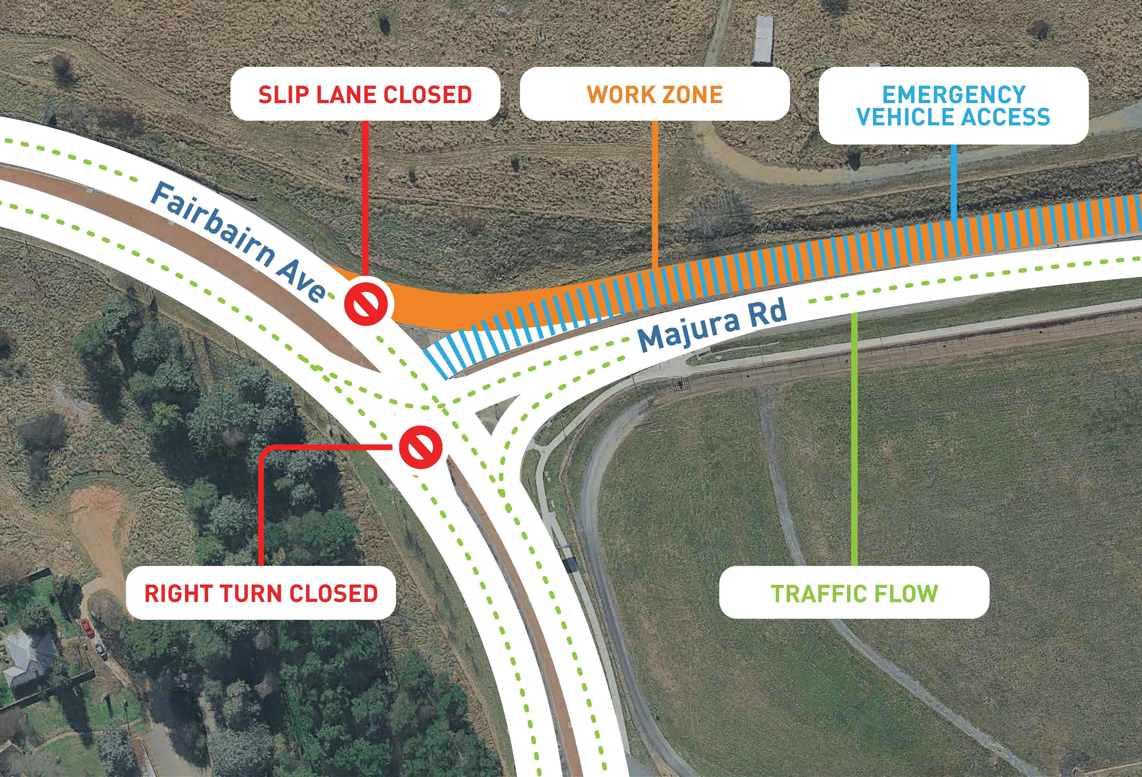 Fairbairn Ave → Majura Rd access closed.